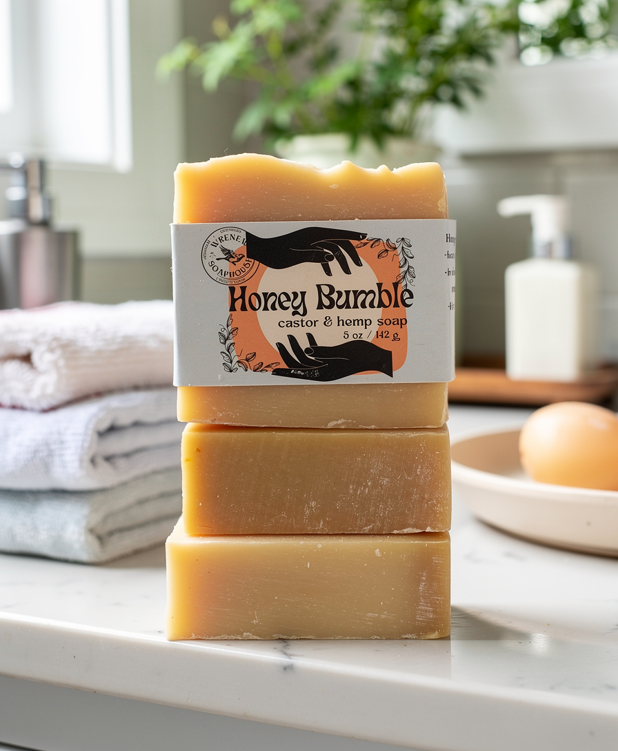All of our soap is artisanally hand-crafted with oils of coconut, olive, palm, avocado, castor, rice bran, and hemp. Our super-fatted soap contains an excess of butters and oils in a finished bar that has not been saponified - turned into soap - to coat your skin in the natural beneficial properties of the remaining oils